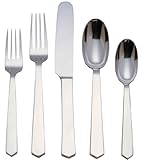 Thomas O'Brien Tiago Stainless Steel 5 Piece Flatware Place Setting, Elegantly Gift Boxed. Tiago stainless steel 5 piece flatware place set upholds a modernist mood with boldly scaled, highly polished, unadorned shapes, just a marked facet at the tip of each handle, and very straight, elongated implements. Crafted in 18/10 stainless steel and consists of 1 each place fork, place spoon, place knife, salad fork and teaspoon. And at this moment get Discount price.Read More